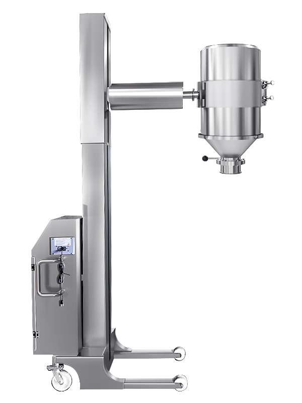 - 升降:以油壓缸動作,提升料桶,可自動定位。